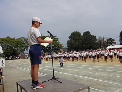 10月8日(水)1~4校時、運動会予行練習をしました。開会式からエール交換を行い、競技・演技は入退場のみを行いながら、各係の動きも確認しました。各団、応援も一生懸命がんばっていました。時間が合ったので、対談リレーは実際に行いました。とても迫力あるレースを見ることができました。今日の反省を生かして、19日(日)本番に臨みたいと思います。
