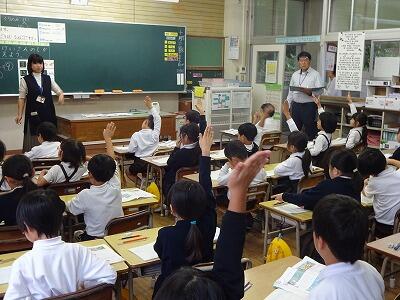 10月2日(木)4校時は先週に引き続き、本年度採用教諭の研究授業を行いました。物語文「ちいちゃんのかげおくり」のクライマックス場面の主人公の気持ちを叙述をもとに考えていきました。自分なりの考えを一生懸命に発表する子どもたちの姿がすばらしかったです。