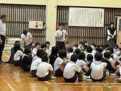 11月19日(火)午後から、日向中学校新入生説明会が行われました。本校の6年生が塩見小6年生とともに参加し、授業参観や牧水カルタをとおしての中が生徒の交流をしました。後半は体育館で保護者の方もいっしょに中学校生活について、日向中の校長先生や生徒会役員の皆さんから説明を聞きました。6年生にとって中学校進学への心構えができた有意義な時間を過ごすことができました。