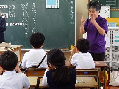 11月15日(金)2~4校時、3年生はクラスごとに「手話」についての学習に取り組みました。3名の先生をお招きして、聴覚に障がいがある方とのコミュニケーションの取り方や手話でのあいさつ、指文字について教えていただきました。子どもたちは真剣な表情で取り組んでいました。