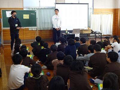 12月8日(日)は日曜参観日でした。この日は学校創立150周年を記念していくつかのイベントを行いました。1つ目が本校卒業生であり、第22代PTA会長も務められた緒方康彦さんによる「150周年記念トーク」です。普段のお仕事のユニフォームで登場された緒方さん、「自分は1年生の時、何組だったでしょう?」とか「ある学年の時、同級生が40人ぐらい同時期に転校したのはなぜでしょう?」など、クイズ形式でのお話に子どもたちは興味津々でした。最後には心のこもったメッセージを子どもたちに送ってくださいました。3ステージのトークを務めていただいた緒方さん、本当にありがとうございました。