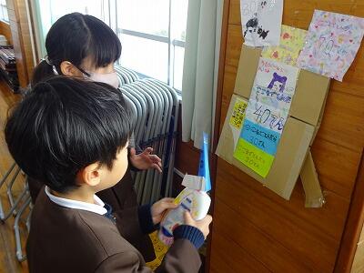 11月15日(金)上町保育所、富高幼稚園、富高保育園の年長さんと先生方をお迎えして、1年生が交流をしました。2校時は各教室での授業の様子を参観してもらいました。自分たちより年下の友達から見られて、張り切ってがんばっている1年生でした。3校時は体育館に移動して、グループに分かれて「ぶんぶんごま」で交流しました。どうやったらうまく回せるのか、一生懸命に教えてあげる様子が見られました。※ ご了解をいただいた園の写真を掲載しています。