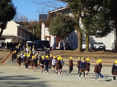 3校時には、避難訓練をしました。家庭科室から火が出たという想定で、非常ベル・緊急放送を聞いて、全校児童が運動場に避難しました。冷たい風の吹く中でしたが、どの学年も「おはしも」を守ってしっかりと訓練に取り組んでいました。全国ニュースでも火災の映像を見ることが多い昨今、もしもの時の命を守る行動を身に付け、火災を出さないことを意識してほしいと思います。