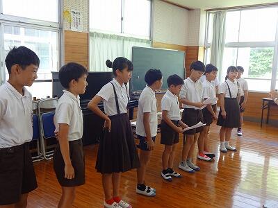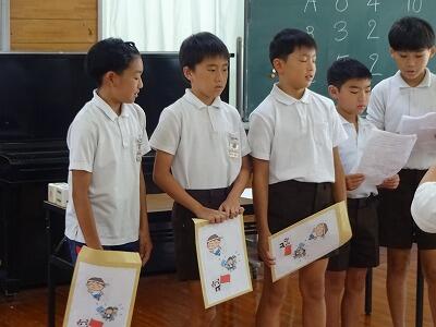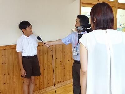 7月18日(金)1学期最後の日です。1時間目にオンラインで教室をつないで終業式を行いました。まず校長からは「夏休みだからこそできることにチャレンジを!」「戦後80年の今年、平和について考えてみよう」ということを話しました。その後、4年生の代表児童が1学期の振り返りをもとに今後の目標を作文発表してくれました。すばらしい内容でした。式終了後には、生徒指導主事から「自分の命や安全を守るための5つのこと」についての話がありました。今回は、ケーブルメディアワイワイさんが取材に来られました。終業式の様子が、本日18:30~18:45のwaiwaiNEWSで放送されます。(その後も再放送があるようです)。6年生2名もインタービューを受けていました。
