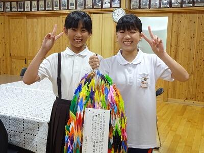 2校時が終わった時、6年生が平和への願いを込めて、総合的な学習の時間を使って作った千羽鶴を見せに来てくれました。