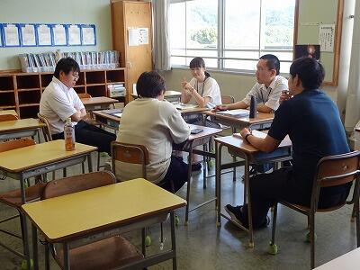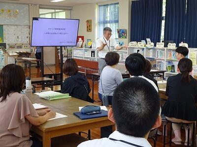 7月30日(水)午後、日向中校区小中一貫教育研修会として、塩見小学校との小小連携による合同研修会を行いました。前半は日向キャリア教育支援センターの方々をお招きして、「キャリア教育基本研修」を受講しました。センター長のわかりやすくて深いお話をとおして、多くのことを学ぶことができました。後半は各学年に分かれて、授業や日頃の取組について情報交換を行いました。職員同士の”つながり”を深めることができた有意義な時間でした。