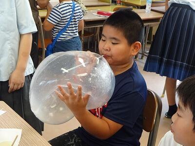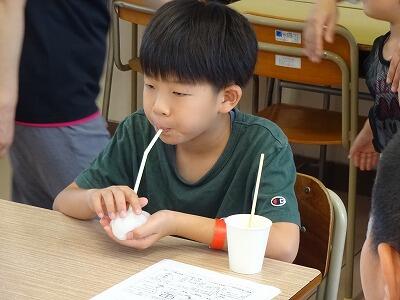 8月2日(土)科学不思議体験『実験・観察教室』が行われました。午前中は日向高校での『実験教室』、本校からは4年生3名、5年生1名、6年生2名が参加してくれました。液体窒素を使っての「コールドワールド」と、4年生は「忍者バルーンスライム」、5年生は「試験管・ストロー笛」、6年生は「ほんとに錬金術?3色の銅」のそれぞれ2つの実験に取り組みました。専門の先生方の指導や高校生のサポートで楽しく取り組むことができました。午後からは『観察教室』、奥野河川プールで水生生物探しに取り組みました。こちらには6年生2名が参加しました。この教室をとおして、これまで以上に科学や自然への関心を高めてくれるとうれしいです。