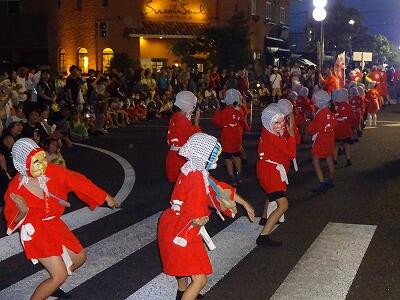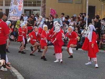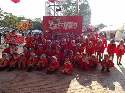 8月2日(土)『第42回日向ひょっとこ夏祭り』が開催されました。本校からは「富高小てんてこてん」「富高小てんてこてんジュニア」の2チーム計46名が、「てんてこてんOBチーム」とともにパレードに出場しました。昼間の暑さが残る中、子どもたちは元気にこれまでの練習の成果を発揮し、パレードを盛り上げました。観客の方からもたくさんの声援をいただきました。これまでご指導いただいた地域の皆様、コースをずっと歩いてサポートしてくださった保護者の皆様、本当にありがとうございました。