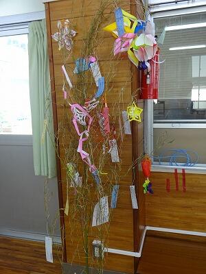 7月になりました。旧暦7月7日は七夕です。4~8組の子どもたちが自分たちと先生方の願い事を書いた短冊を集めて、きれいな七夕飾りを作ってくれました。また、7月3日(木)1校時には合同で「七夕パーティー」も行いました。じゃんけん列車やすきなものビンゴで友達のことについての理解を深めながら、楽しい時間を過ごしました。