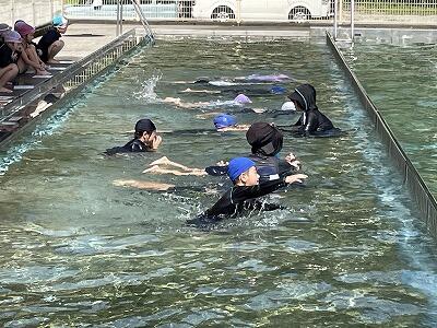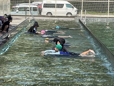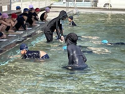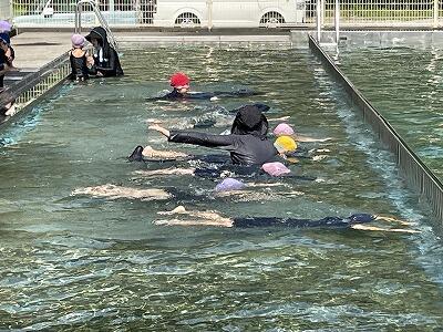 7月8日(火)今日も朝から暑いです。2・3校時、1年生は体育でのプール学習最終回を迎えました。プールが始まった頃は、顔を水につけるのもおっかなびっくりの子どもたちもいましたが、最終回の今日は上手になった「伏し浮き」を見せてくれました。先生の声かけで、思い切ってチャレンジする姿がすばらしかったです。