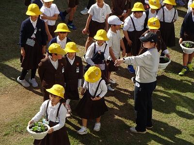 11月29日(金)今日は子どもたちにとってお楽しみの遠足です。(6年生は来週、修学旅行に出かけるので留守番)1年生はバスに乗って門川心の杜公園へ、2年生は郵便局を見学して原町公園へ、3年生はバスに乗って美々津民俗資料館、日向サンパークへ、4年生は日向市駅から電車に乗って宮崎市科学技術館と文化公園へ、5年生は江良公園へ出かけました。徒歩で市内の公園に出かけた5年生と2年生の弁当の時間をのぞいてみました。