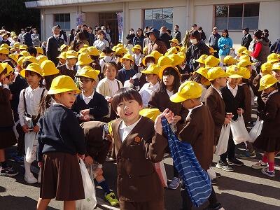 12月8日(日)「チャレンジランキング大会」「150周年記念トーク」終了後は、お祝いの餅まきです。1・2年、3・4年、5・6年に分かれて、紅白のお餅やPTA役員さんが詰めてくれた菓子袋を150周年記念実行委員会の役員の皆さんや区長さん方に威勢よくまいていただきました。会場は大盛り上がりでした!