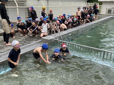 話は変わりますが、今日は6年生、2年生のプールの授業がありました。6年生はけのび、バタ足、クロールに向けての手の掻き方を確かめていました。2年生はプールの中で先生がもっているフラフープを潜って上手にくぐり抜けていました。