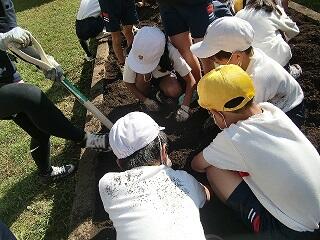 10月28日(木)、2年生は、生活科で芋掘りをしました。自分たちが畑(花壇)で育てたお芋は、大きいものから小さいものまでたくさん土の中から出てきました。