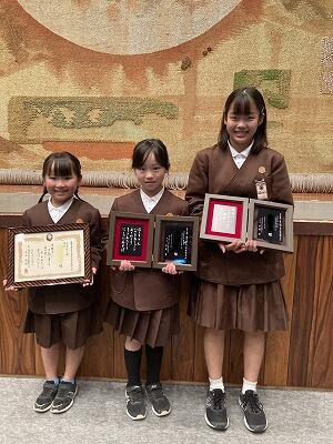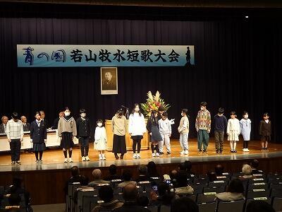 12月13日(土)日向市中央公民館で「第15回青の國若山牧水短歌大会表彰式」が開催されました。本校からは3名の児童の作品が入賞し、表彰されました。