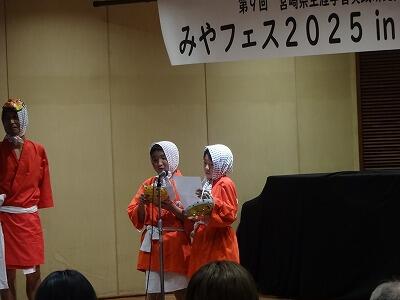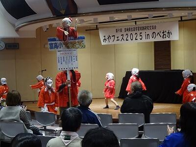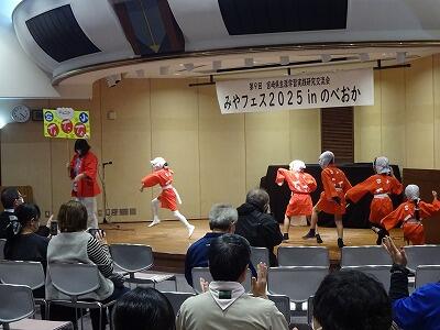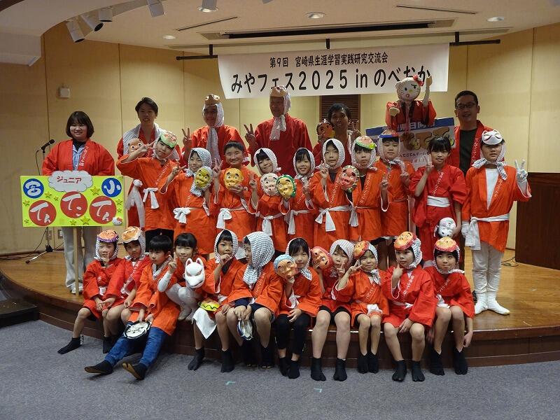 12月13日(土)カルチャープラザのべおかで開催された「みやフェス2025(第9回宮崎県生涯学習実践研究交流会)」のクロージングに本校"てんてこてん"が出演しました。キレッキレのひょっとこ踊りを披露し、会場を明るく楽しく温かい雰囲気に盛り上げてくれました。参加してくれた児童の皆さん、送迎してくださった保護者の皆様、ありがとうございました。
