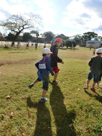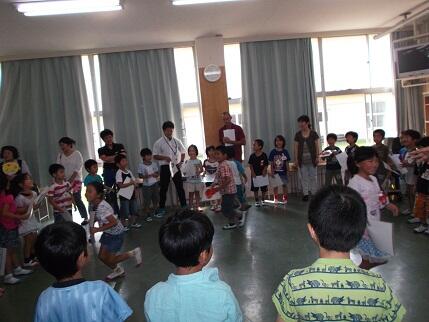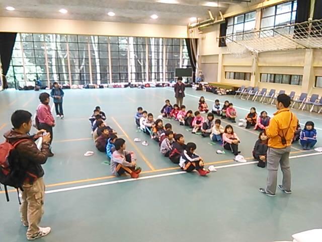 全校に流れる子どもの放送に従って、6年生の班長さんが、下学年の子どもたちを引き連れて、前半と後半に分けた2つの遊びを遊ぶことになります。