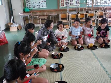 クラブの部員は4年生以上の子どもたち13名です。「茶道」は、日本の伝統文化の一つです。お茶を点てる仕草やその意味などを優しく教えてくれます。併せて礼儀やマナーの大切さも教えていただき、子どもたちにとっては貴重な体験をすることができています。