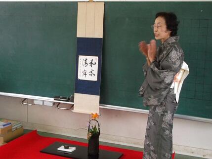 学校外から茶道の先生をお招きし、月に2回程度、指導していただいています。今年度で2年目になります。