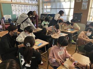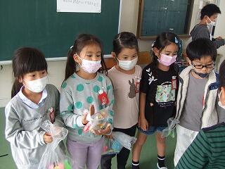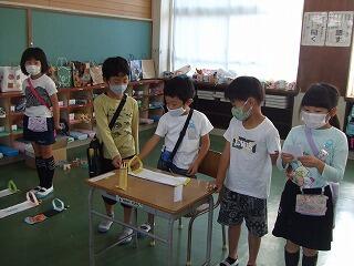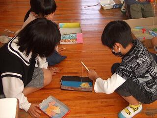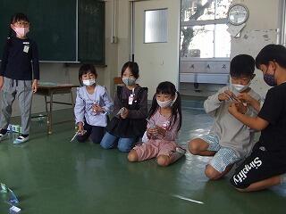 2年生は、1年生に楽しんでもらおうと、班ごとに思い思いの手作りのおもちゃを作ってきました。1年生に遊び方を教えたり、いっしょに楽しんだりして、交流を深めることが出来ました。2年生の成長がうかがえるいい学習となりました。