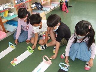 〇身近にあるものを使い遊ぶ活動を通して,みんなと楽しみながら遊びをつくり出したり,進んで触れ合い交流したりできるようにする。 (学びに向かう力,人間性)