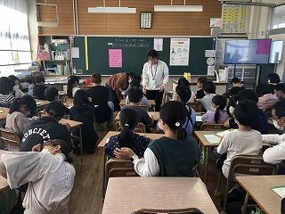先日、本校で6年生を対象に防災講座が開かれました。これは、合同避難訓練を前に、防災意識を高める目的で行われたもので、市の防災推進課の方々に地震や津波の怖さについて、資料映像等も交えながらお話をしていただきました。