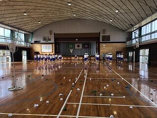 5年生は、2クラスありますので、クラス対抗の競技会を行いました。本当は運動場で実施する予定でしたが、前日の夜からかなり雨が降ったので体育館で行うこととなりました。