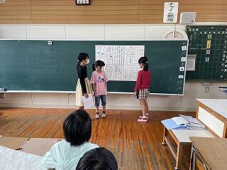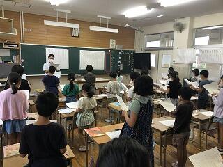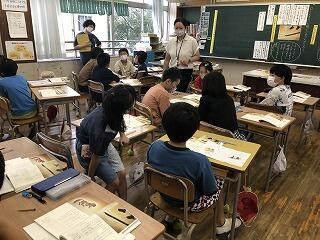 本校には、初期研修対象の1年目と2年目の教諭が2名います。授業は、2学年とも物語文の学習で、3年生が「ちいちゃんのかげおくり」、4年生が「ごんぎつね」でした。