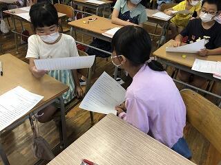 9月30日までの学校生活全般を通して、教科等の成績、行いの様子等に加え、所見の欄にはよく頑張ったところ、努力の過程、一人一人の課題など、学級担任からの言葉が添えてあります。先生たちは、一人一人にただ通知表を手渡すだけでなく、励ましや称賛の言葉を添えて渡していました。受け取った後は、しみじみと見つめる子、すぐに机の中にしまう子など、いろいろな反応がありました。