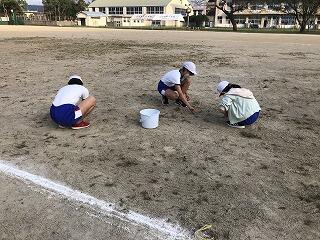 8月26日の2学期始業日には、運動場に雑草がかなり生えていました。そこで、掃除の時間を中心に少しずつ草取りに取り組んだ結果、かなり雑草も少なくなってきました。