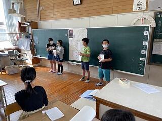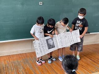内容として、牧水先生の延岡中学校時代につくった初めての短歌や、最後につくった短歌の意味調べや、牧水先生にまつわる話を紙芝居やペープサートにしたり壁新聞を作ったりと、いろいろな表現方法を使って班ごとにまとめました。