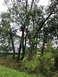 大きな枝の垂れ下がりなど撤去が困難なところについては、後日教育総務課の方々に処理していただくことになりました。よろしくお願いします。学校しては、子どもたちが危険区域に立ち入らないように周囲にコーンを置き、各学級でも近づかないように指導をしたところです。