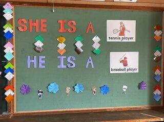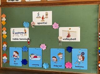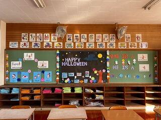 1月から12月までの英語表示、季節ごとの行事の英語での表現、現在学習している単元のスポーツに関する設営に加え、「ハッピー ハロウィン」の設営で、外国語科室が一層華やかになりました。これで、日知屋っ子は整った環境の中で、外国語科や外国語活動の授業にさらに楽しく取り組むことが出来ると思います。