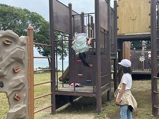 【サンパークの大型遊具で遊ぶ2年生の様子】