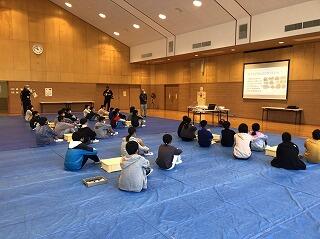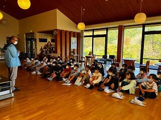 荷物をプレイホールに置いて、はじめのつどいを行いました。研修生代表の言葉では、代表児童が堂々と発表することが出来ました。また、自然の家からの歓迎のあいさつや先生方の紹介もありました。