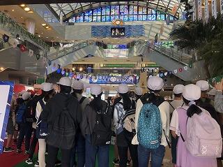 空港では、展望デッキで航空機の発着を見学した後、集合写真を撮りました。11時にはからくり時計で「夢かぐら」を見て、みんな感動していました。