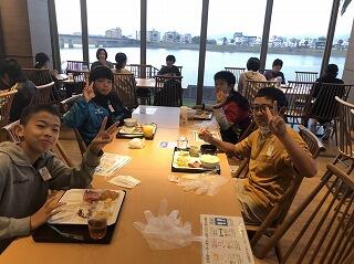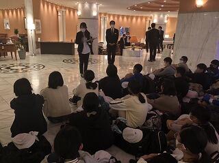 修学旅行の宿泊先は、宮崎市の宮崎観光ホテルです。大淀川河畔にたたずむ素晴らしいホテルに子どもたちも嬉しそう。