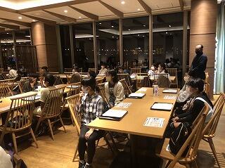入館式を終えると、部屋長会です。ホテルでの過ごし方などを再度確認し、それを班員に伝えてもらいました。