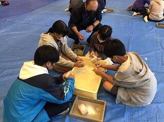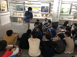 遊古館…その名のとおり、古(いにしえ)を遊ぶ(学ぶ)館です。子どもたちは、出土した土器などを見学し、勾玉づくりを体験しました。