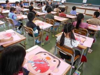 1年生は「歯磨きポスター」を、6年生は「愛鳥週間ポスター」を描いていました。皆、一生懸命に取り組んでいて、見応えのある作品ができていました。