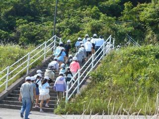 5月8日の2時間目に、地震や津波を想定した避難訓練を行いました。今回は、運動場に1次避難をした後に、櫛の山に2次避難をするという訓練でした。