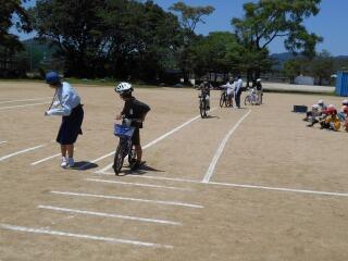 5月9日の2時間目(高学年)、3時間目(低学年)、4時間目(中学年)に、交通安全協会の方々に来ていただき、交通安全教室を行いました。