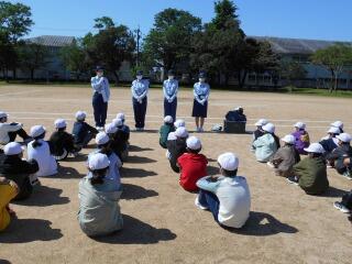 低学年は歩行の仕方、中学年と高学年は自転車の乗り方と歩行の仕方を学びました。新年度これまで、日知屋小学校児童の交通事故は起きていませんが、常に意識を高くもっておくことが大事です。本日学んだことを、今後に生かしてほしいと思います。