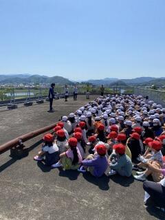 5月10日の昼休み時間後、地震・津波の際に屋上に逃げる避難訓練を行いました。