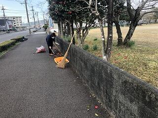 ツバキは、花が丸ごと落ちるという特徴をもっていて、運動場の東側の歩道には、ツバキの花が毎朝たくさん落ちています。昨日、それを掃除しようと、東側の歩道へ出てみたのですが・・・。なんと、地域の方がツバキの花を拾って、ゴミ袋に入れてくださっていました。話を伺うと、公園通りにお住まいのNさんという方で、ツバキの花が気になるので定期的に掃除をされているとおっしゃっていました。(本校のホームページでは、児童を含め個人名は出さないことにしています。イニシャルで表記させていただきました。)お礼を申し上げるとともに、いっしょに掃除をさせていただきました。