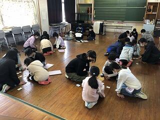 11月に希望者を募って、有志による「牧水かるたクラブ」を結成して、毎週火曜日の昼休みに練習をしてきました。昨日は、最後の練習日ということもあって、1年生から6年生まで、20名を超える子どもたちが音楽室に集まってかるた練習を行いました。