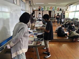 この選書会とは、「トトロ三人の会」の方々やお話会の皆さんの協力を受けながら、主に児童が図書室にはない本を実際に手に取って、「自分たちの読みたい本」を図書室の蔵書にしようというイベントです。