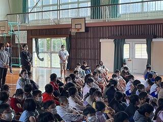 今月のお話のテーマは、「失敗をおそれない!」でした。校長先生は、お話の中で蒔田しんじさんの「教室はまちがうところだ」という詩の紹介や、野球選手(10回バッターボックスに立って3回ヒットが打てれば一流選手である。)や発明王エジソン(電球を発明するのに1万回以上の失敗があった。)の話をされました。