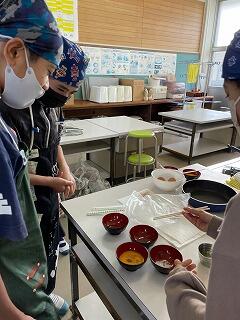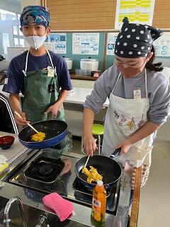 6年生が、家庭科の調理実習で、スクランブルエッグづくりに挑戦しました。