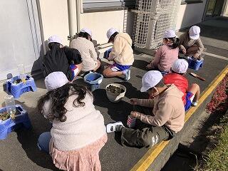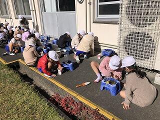 先日のブログで、2年生の冬野菜の種まきについてお伝えしましたが、2年生は自分の鉢でラディッシュも育てています。昨日は、そのラディッシュの間引きをしました。